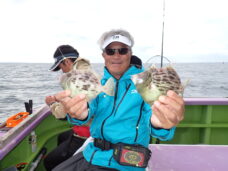 さて、ご機嫌なお2人もいらっいました。カメラマンさんも乗せ、峯岸船長が舵を握る船は、定刻に出船いたしました。