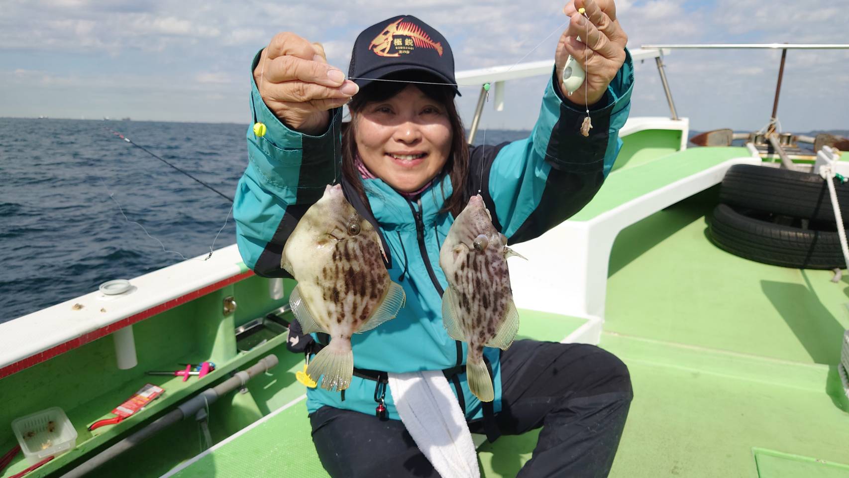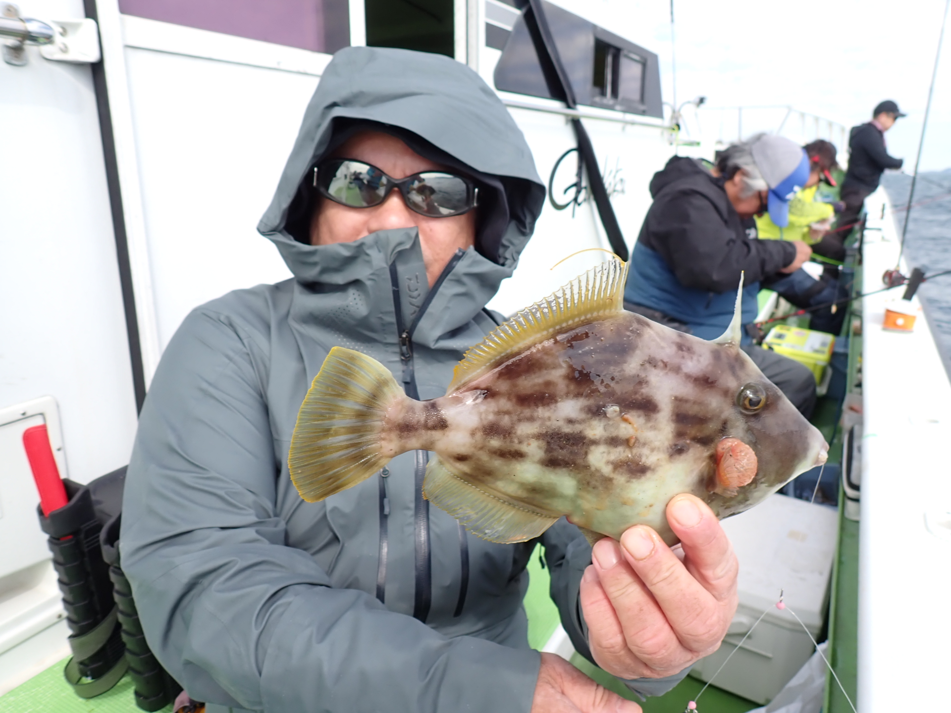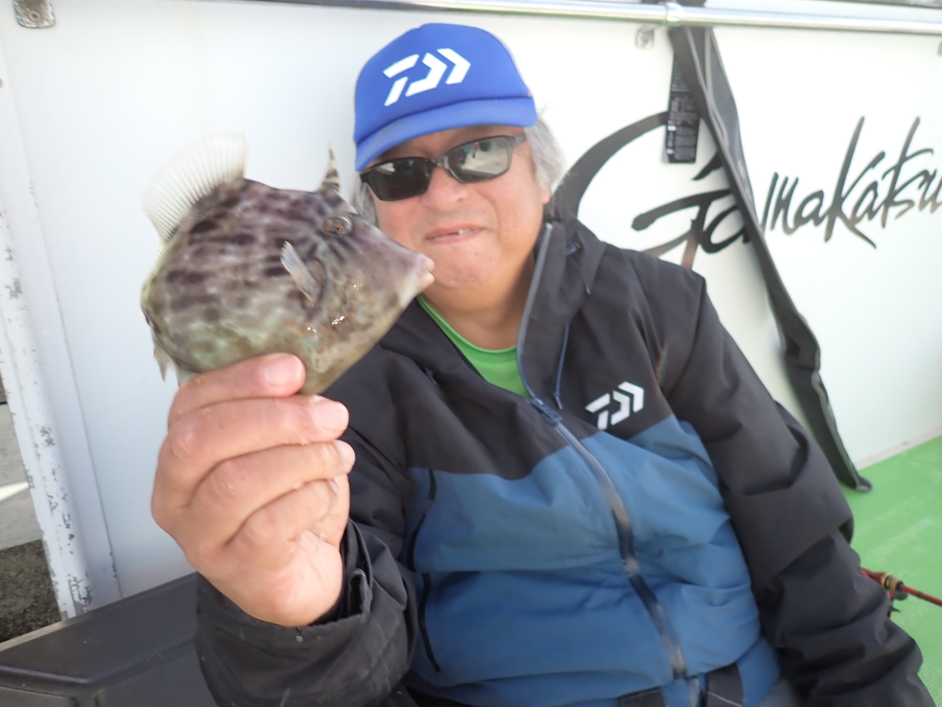 海底には石がゴツゴツしている様相、船中小型カワハギが上がっていましたが、ここで紀代美さんに生涯初のカワハギのダブル! おめでとうございます!!