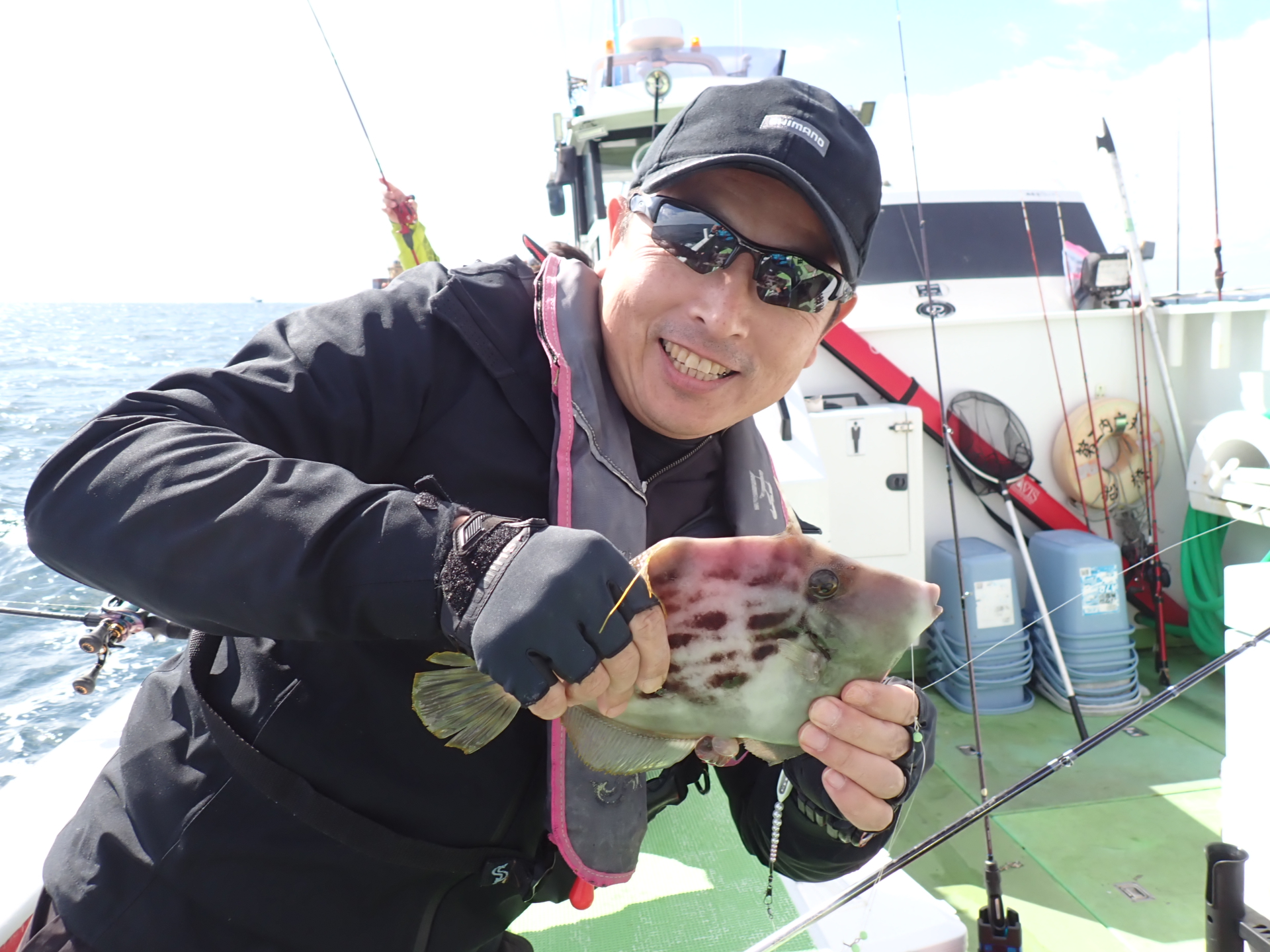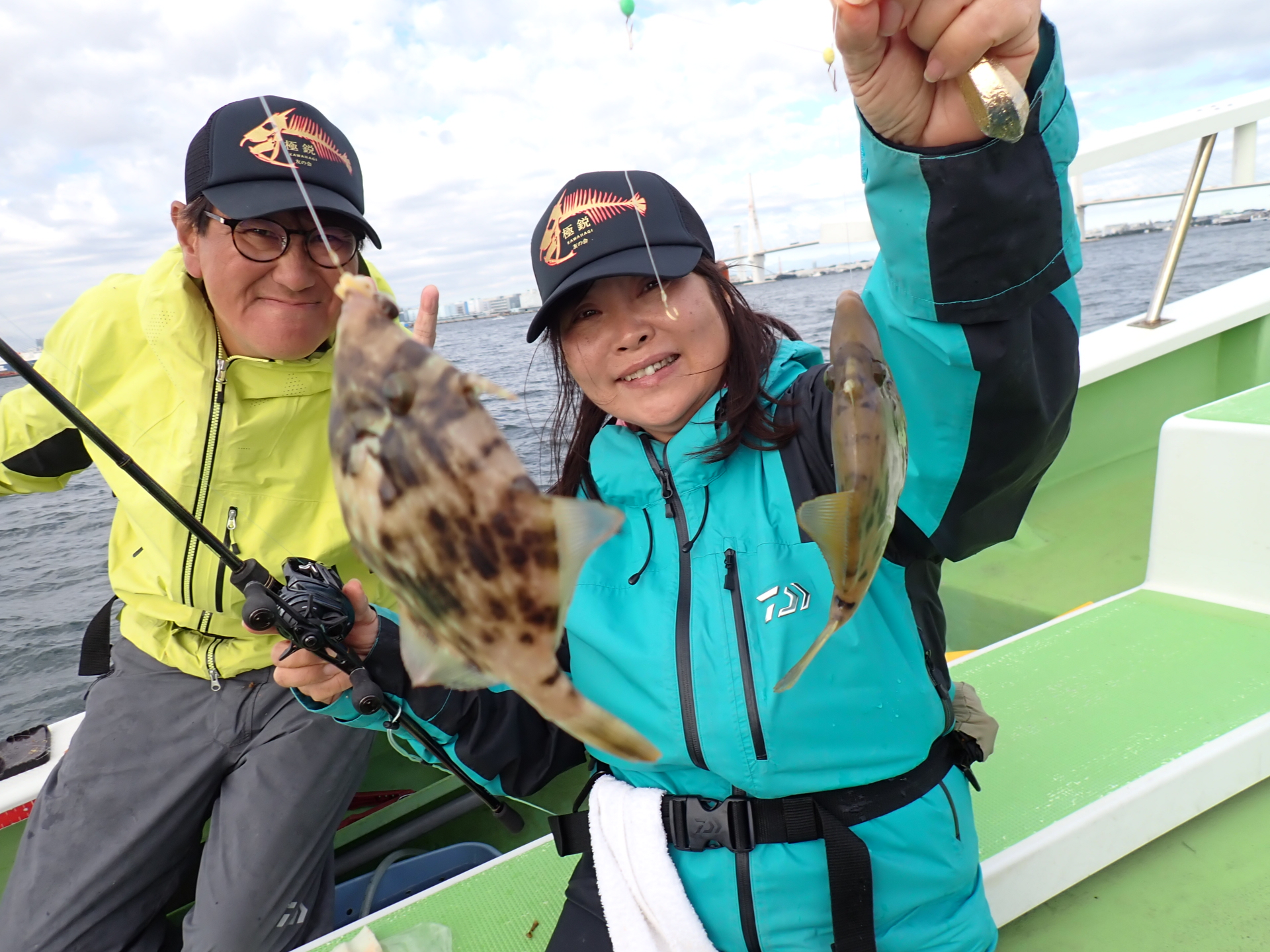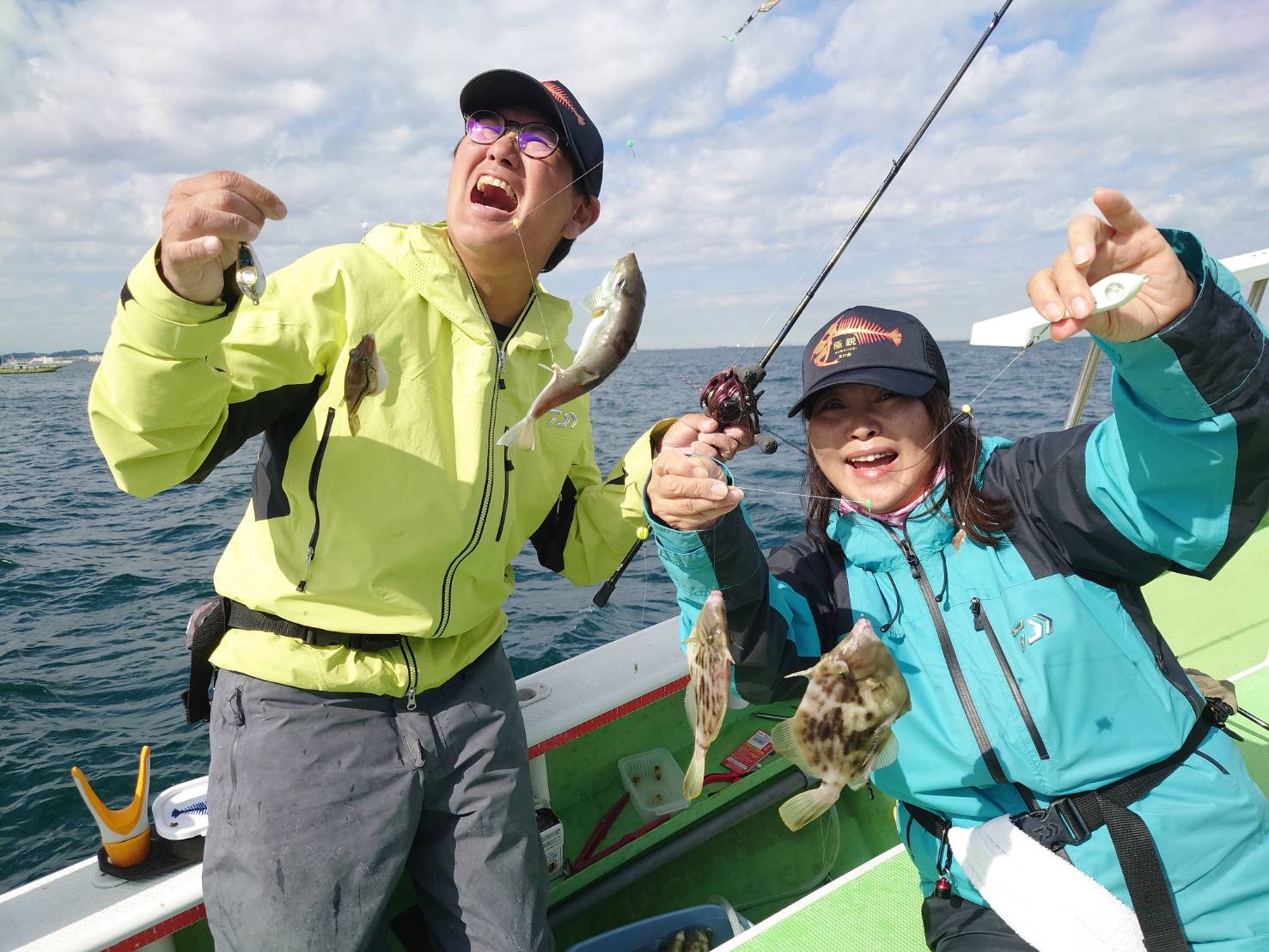 海底には石がゴツゴツしている様相、船中小型カワハギが上がっていましたが、ここで紀代美さんに生涯初のカワハギのダブル! おめでとうございます!!