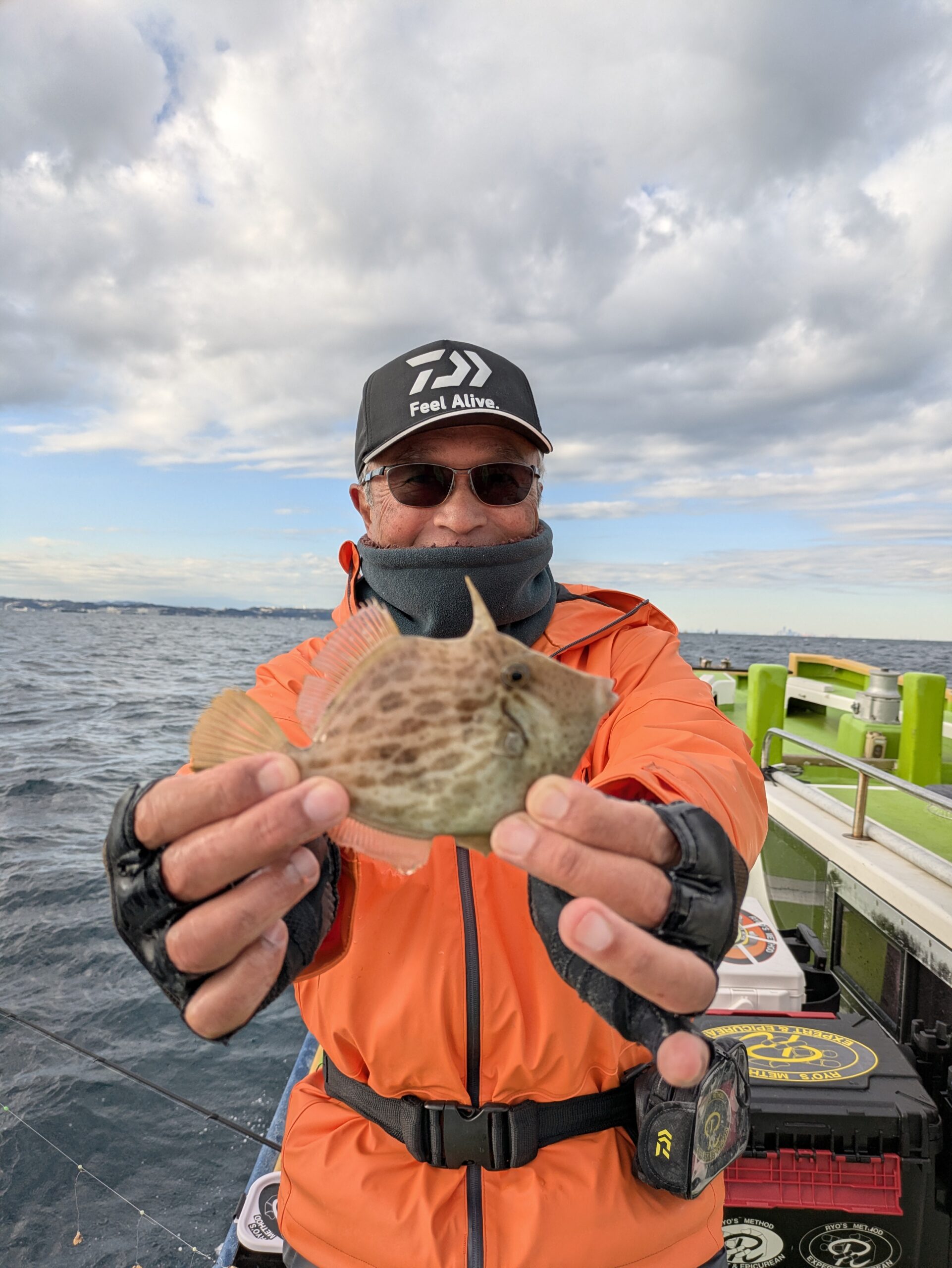 沖上がり間際、それでも少し活性が上がったのか、それまでワタだけ盗っていったカワハギがハリ掛かりしてきました。