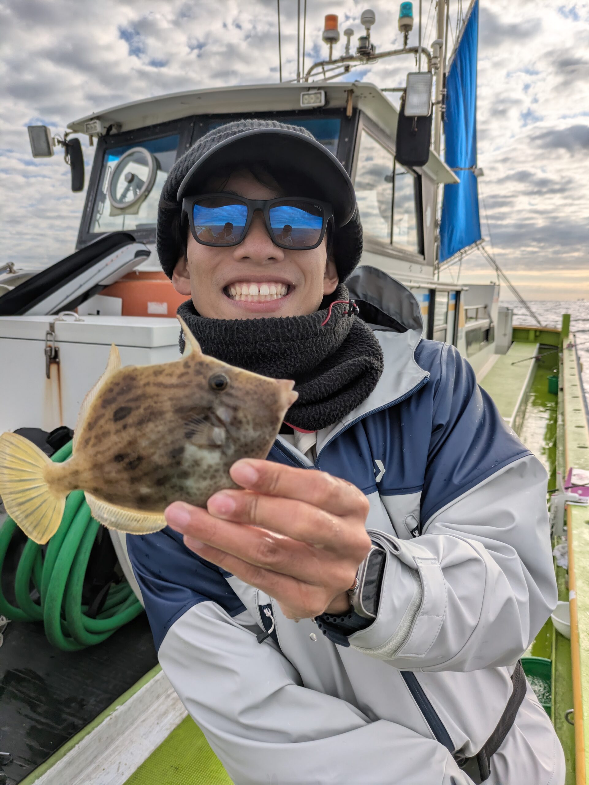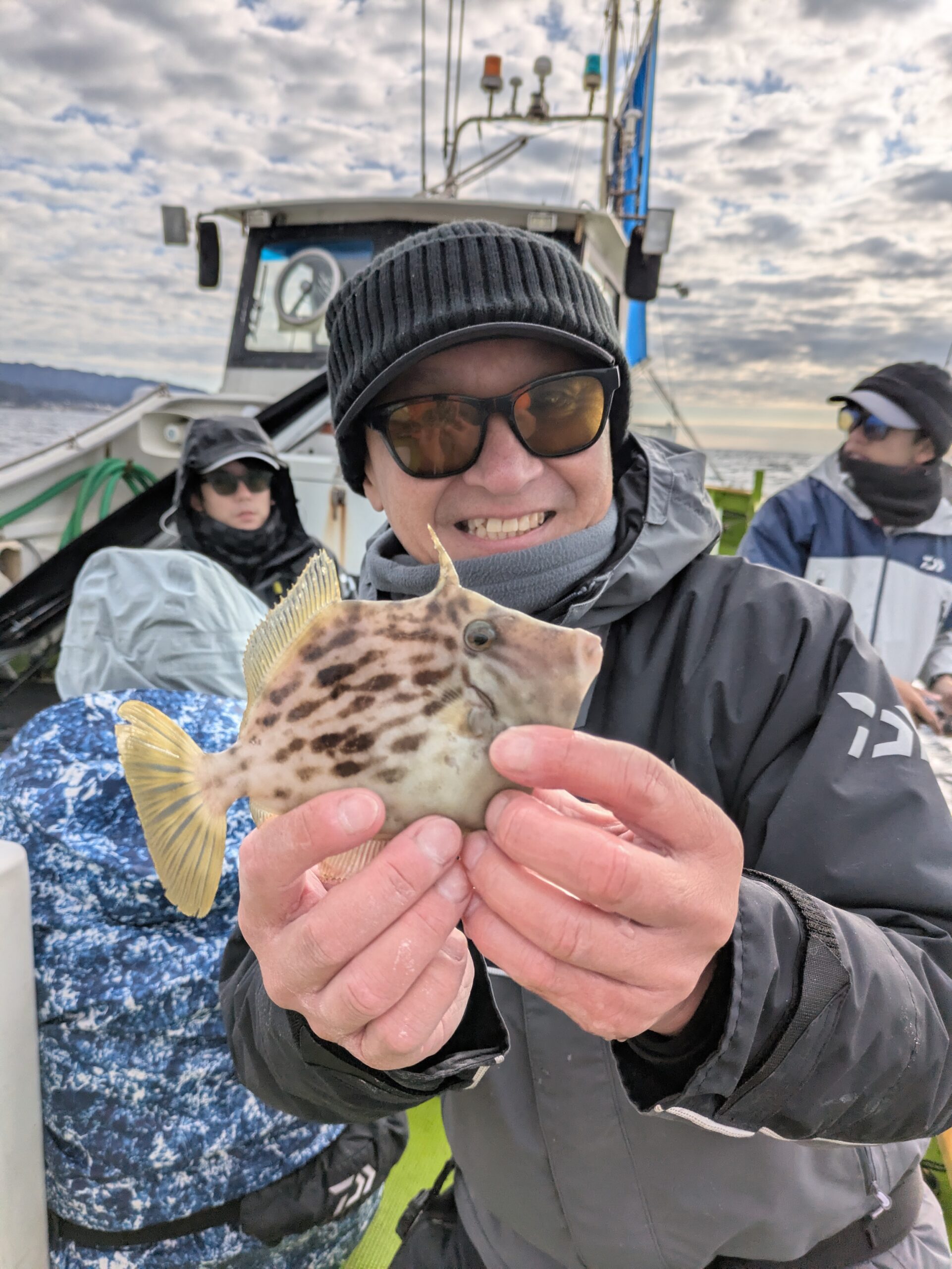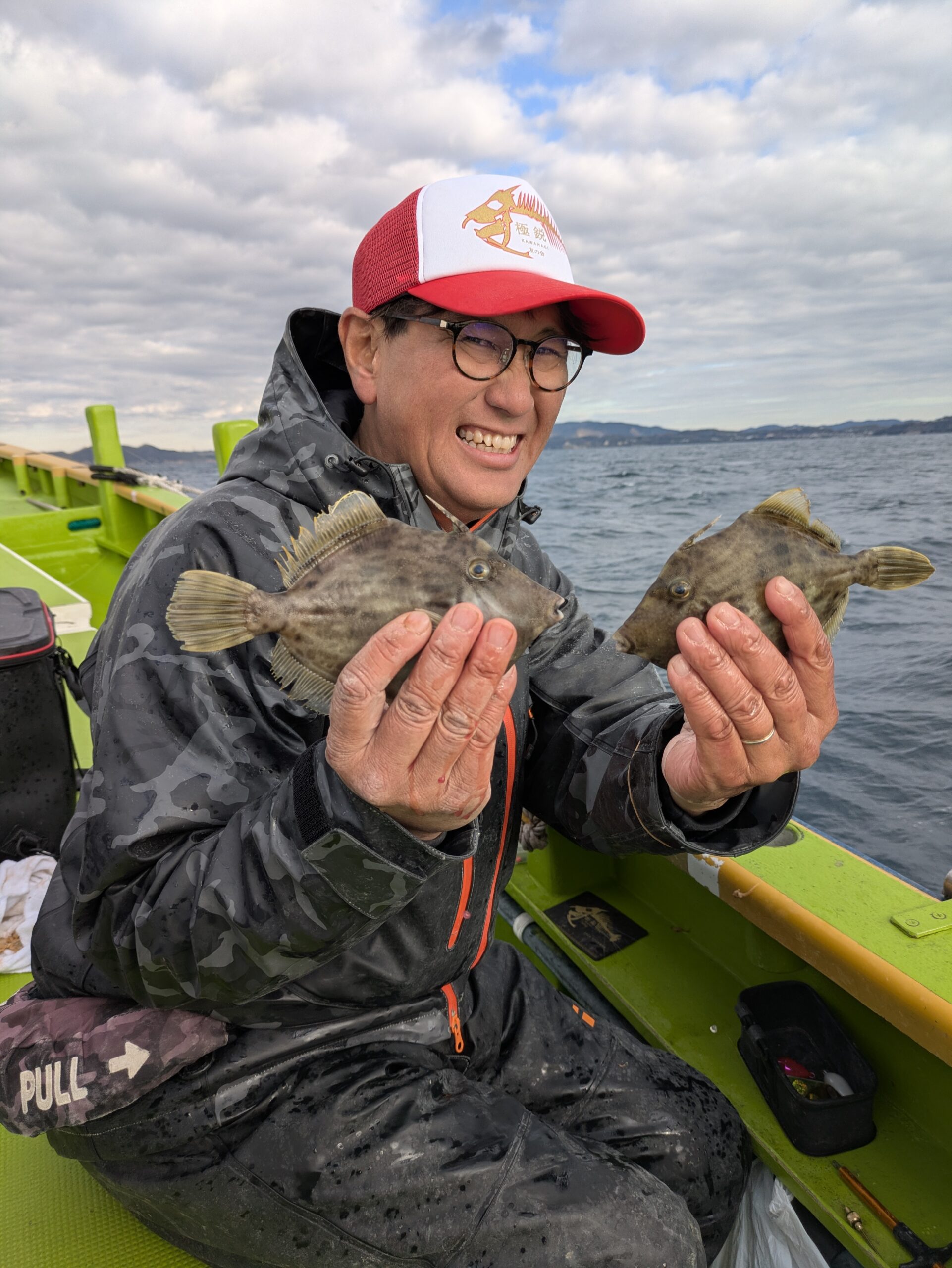 潮が上げ始めたのか、その頃ポツポツをカワハギが上がり出し、宮澤さんはダブルも!