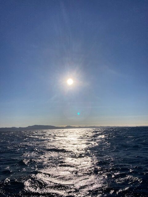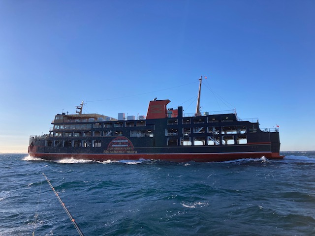 大船長は東京湾を横断、船体の左舷側から飛沫を浴びながら竹岡沖に移動いたしました。