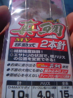 やはり先ずは仕掛けから。『快適マダイ移動式MV2本バリ仕掛け3号10m』→枝バリの位置が自在に変えれるからエサ取り具合で自在に変化を付けれる。