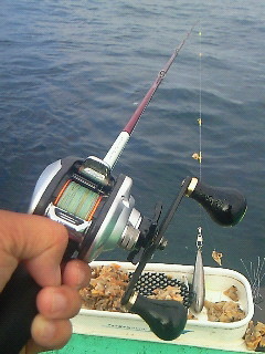穂先の硬い、手感度のいいロッドだからオモリを海底から離して、ウワウワしてるだけで勝手にカワハギが掛かります!!