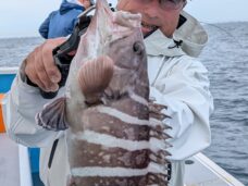 私も、剣崎沖のカワハギ達に悶絶させられながらも、デカパン カワハギも釣れて、2枚の長寸勝負では船中4位だったものの、数賞では船中トップの12枚で、オーシャングローさんの高級マグロセットをゲットできましたよ!