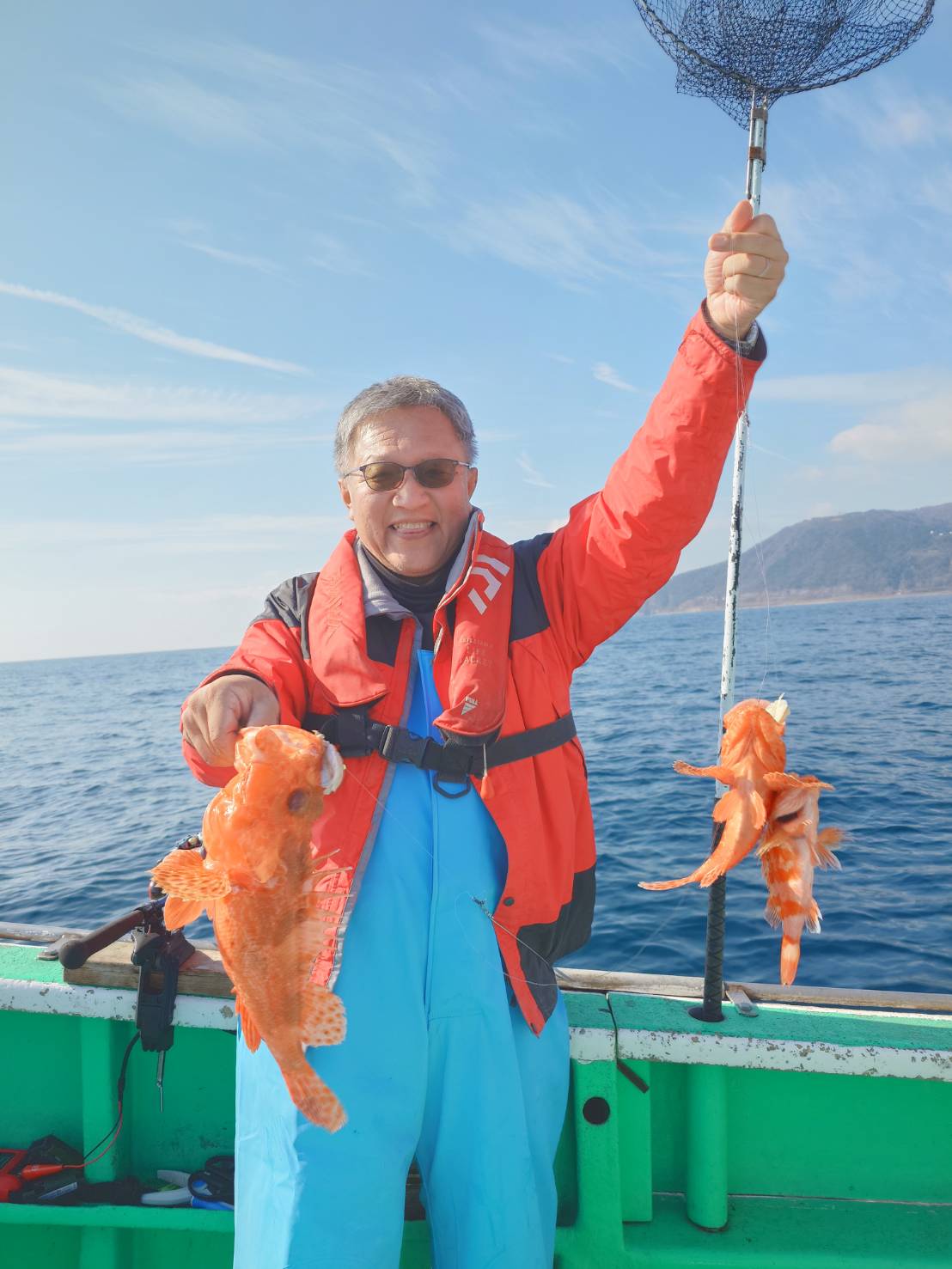 同船の皆さんにも良型鬼カサゴ乱舞で、皆さん破顔一笑の良い笑顔です。