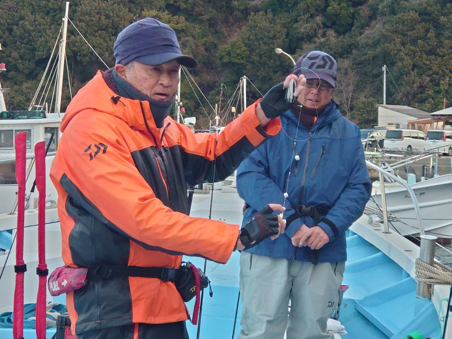 水天丸さんでは釣り教室スタイルで、出船前にレクチャーをさせていただきました。