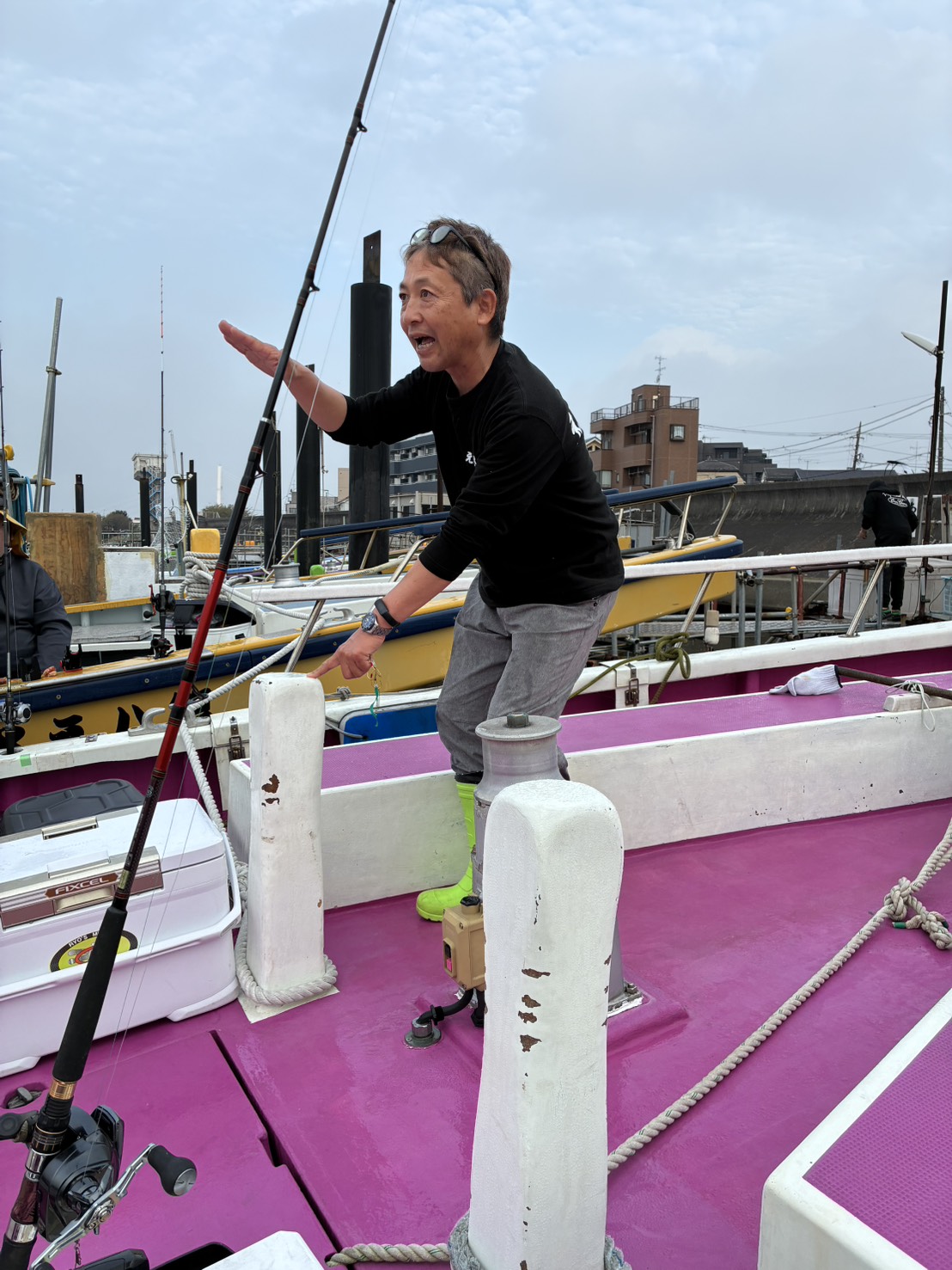 レクチャー終了後、女将さんと細田さんのお見送りを受け出船、3船は一路剣崎沖を目指しました。