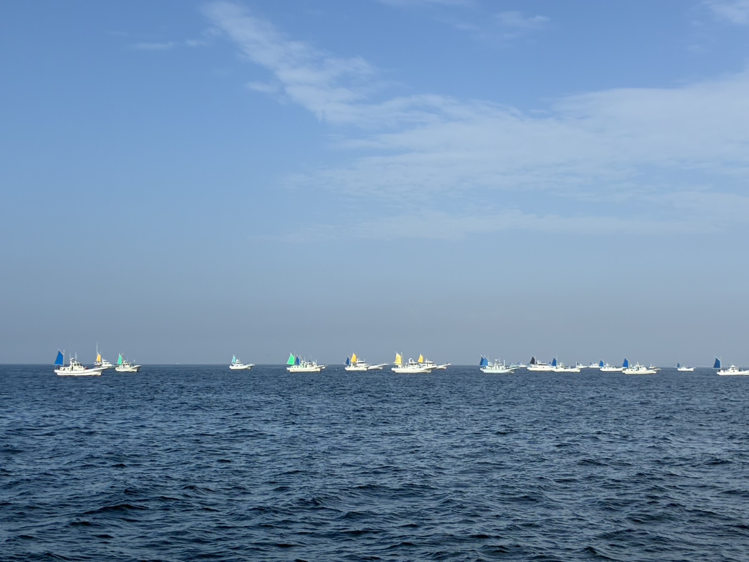 釣りを開始して1時間余りが経ったときでしょうか、船団から離脱して離れたポイントに向かい出す船。
