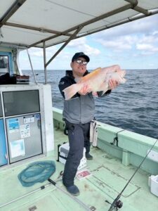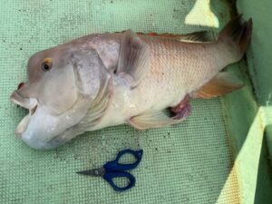 数分の格闘ののち上がってきた魚はなんとコブ鯛でした。