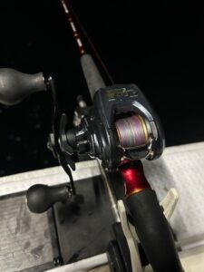 誘い方は仕掛けの着底を派手にすると嫌がって逃げていますのでやるべく底ギリギリにきたらスプールを指で押さえ落下速度を調整し静かに着底させます。そこからの誘いは何パターンかあります。