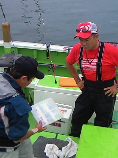 出船前、お久しぶりの挨拶を終えてからは、お互い今日の作戦をチェックしあいです。