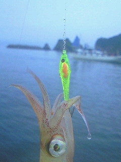 佐円丸船長さんから最近良くイカがつくと教えていただいた、ミッドスッテSZシャギーグリーン