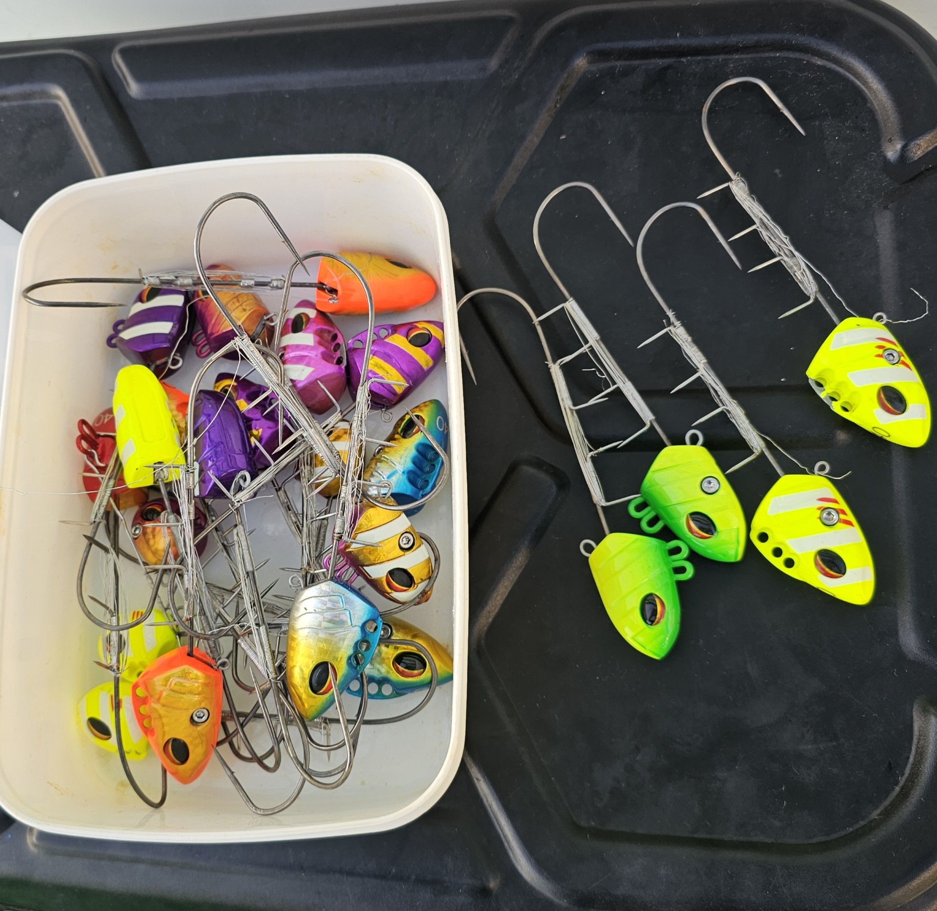 最近巷で人気沸騰中の、通称「メロン」のテンヤ(威嚇チャートスポットグロー)と、いつも安定のイエローゼブラを朝一のスタメンに起用。