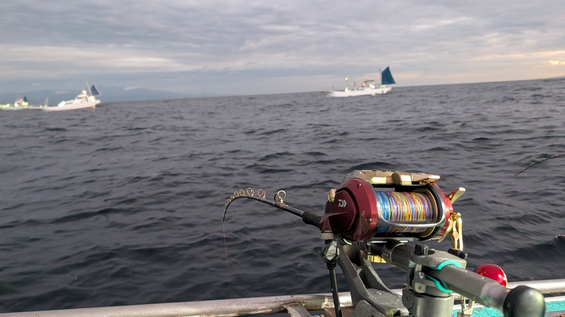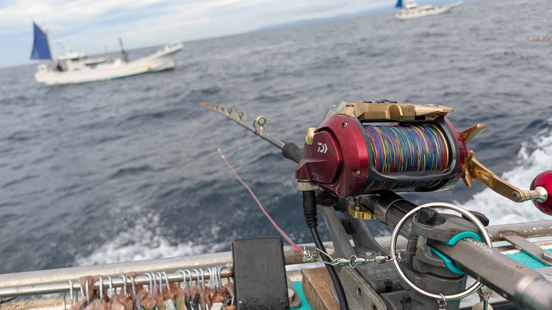 3投目は船中空振りだったものの、4投目以降は空ブリ無しで多点掛けの連続でした。