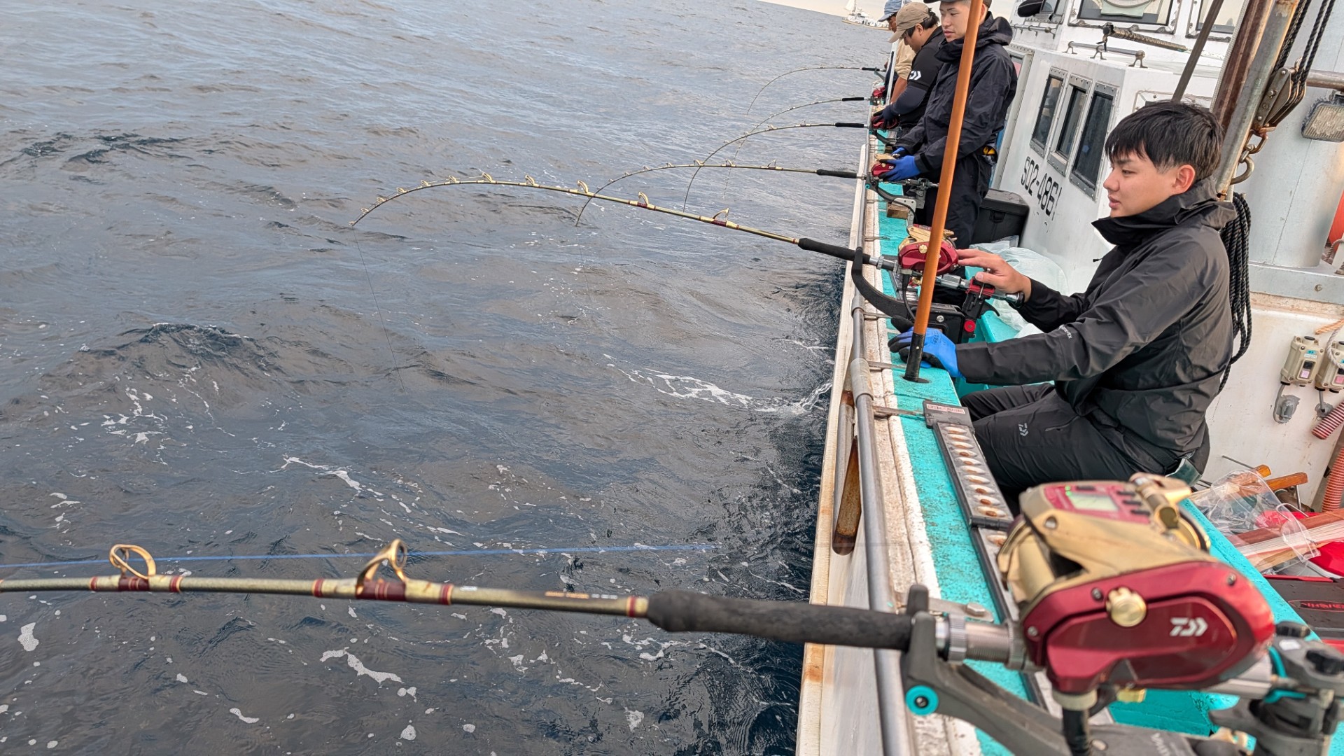 程なくトモ寄りの方からアタリが出始めた様子。