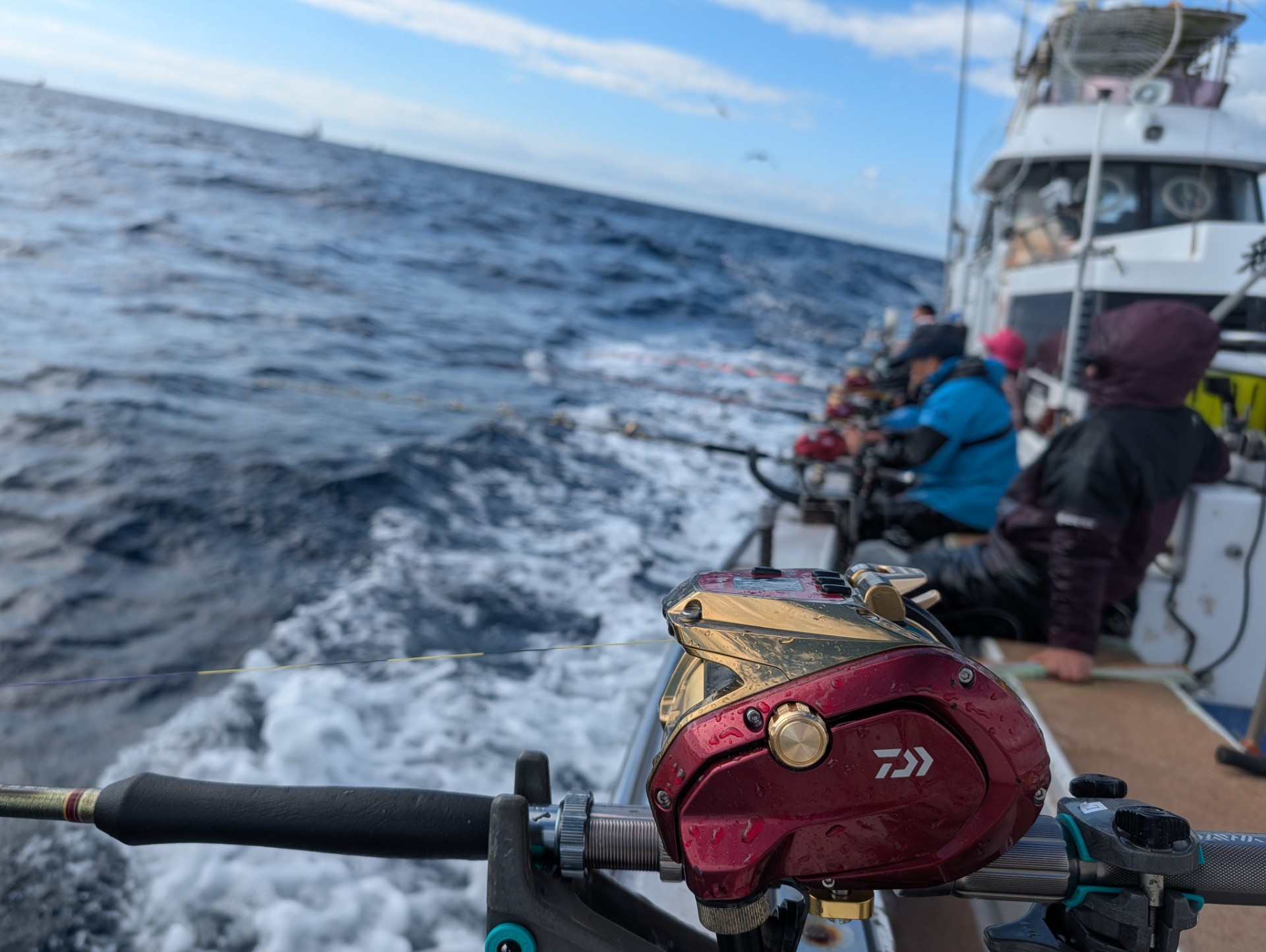 ここでは、オモリ着底後、一旦20m程巻き上げて糸ふけを取って再着底。底からはドラグを全緩にして船の上下動でラインが滑り出していくようにします。
