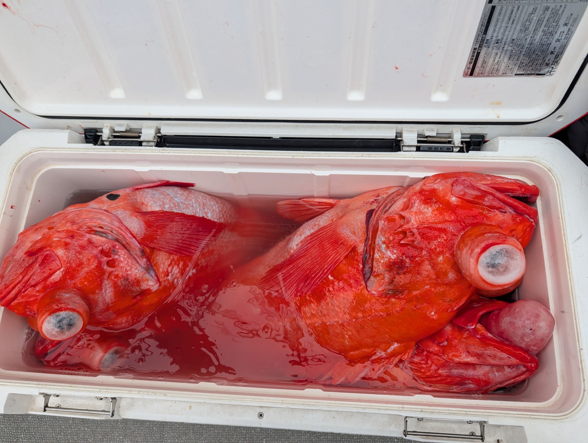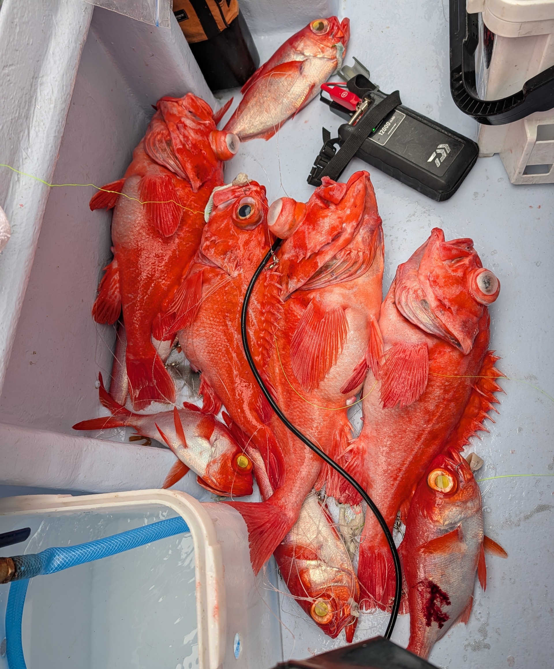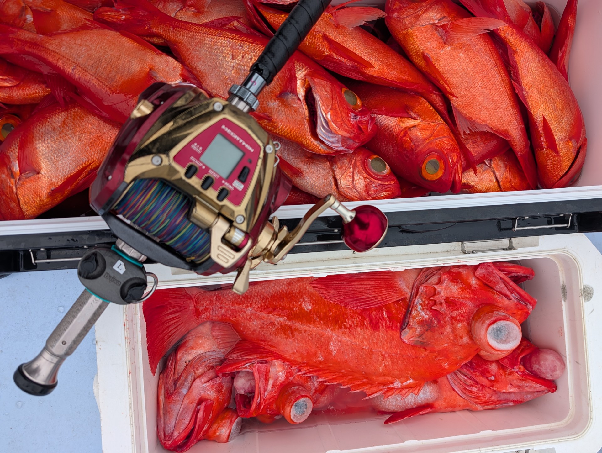 トランクマスターHD8000がキンメで満タンに! もう一つの35Lクーラーもアコウダイとキンメで満タンに!