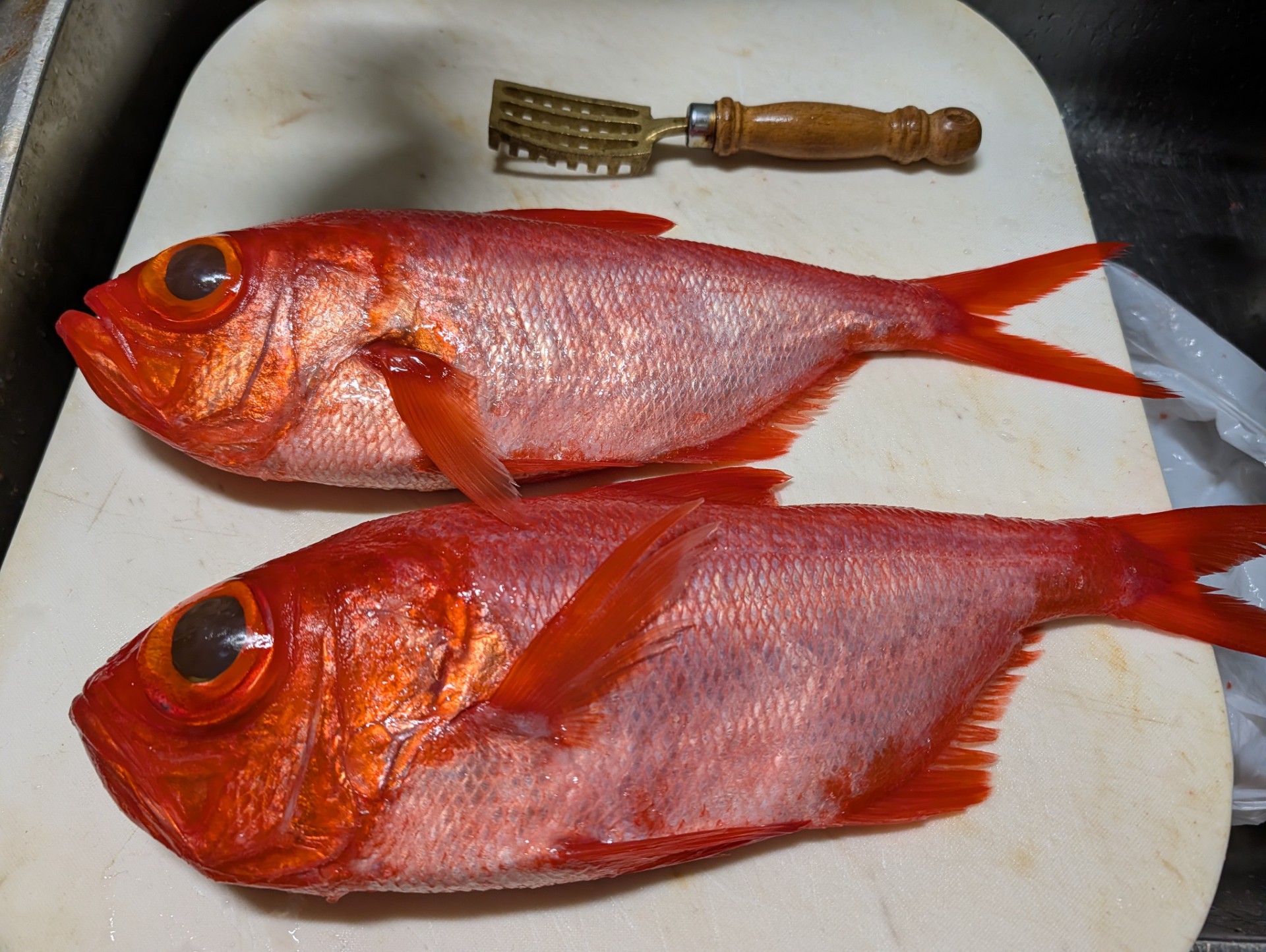 この日釣れたキンメの一番小さいサイズがこれ。