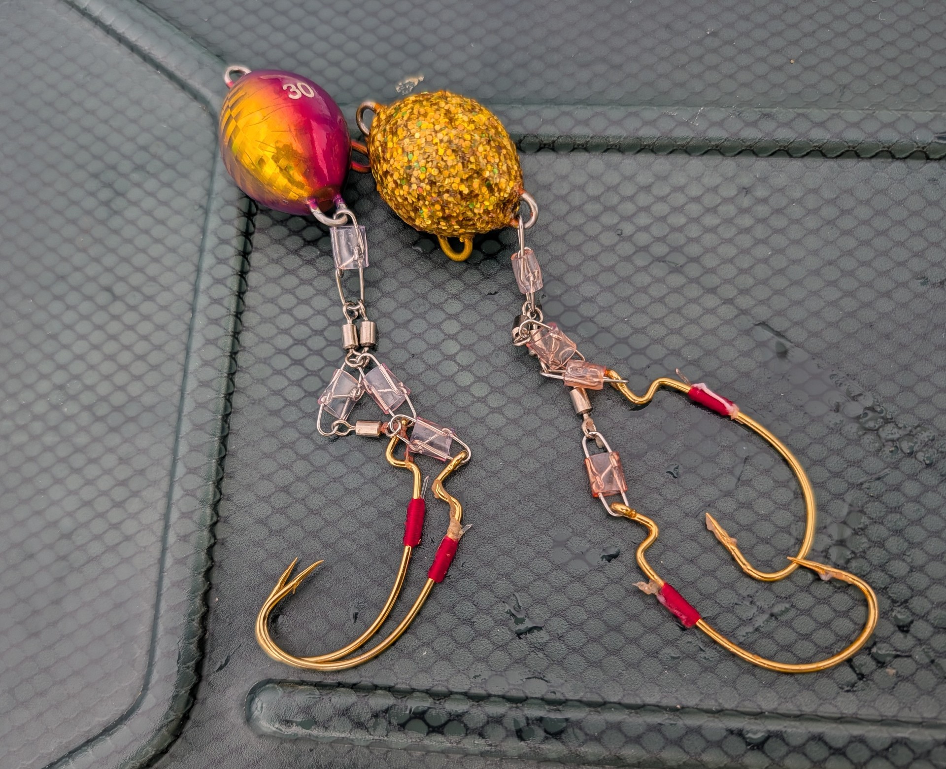 朝からなかなかアタリを出せない私に、宮澤氏がアタリカラーのリグを貸してくれ、針の「エサ留め」の上手な活用法を伝授してくれました。